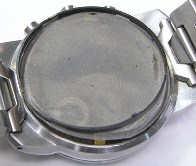 先日お預かりの腕時計。実はこれ数ヶ月前に電池交換メンテナンス(洗浄)した時計ですが、それが数ヶ月で止まったし表示も消えたと言う事で送られてきました。