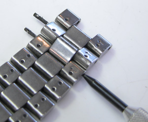反対側も。ベルトの裏側をみると「かしめ修理が出来る構造」ですが。