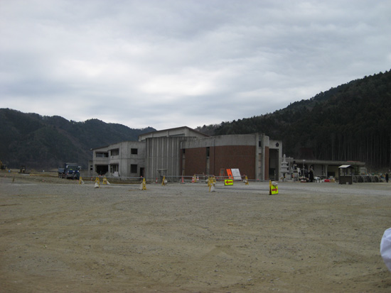 写真の下が先日、私らがみたそのままの校舎。門柱も門扉もなく。