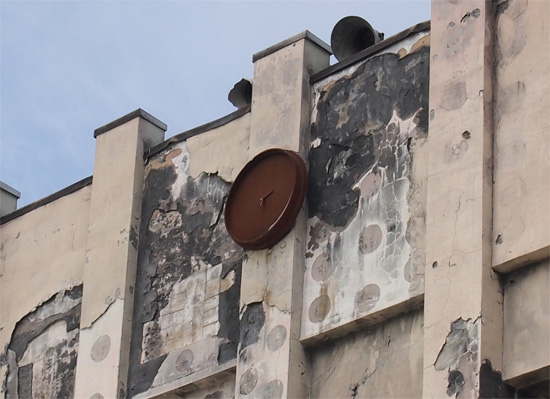 三階の時計まで海水に浸かった証拠に時計のサビが凄い。