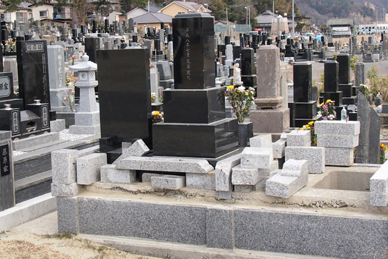 アップにするとわかりますが、どのお墓も傷だらけ。津波で墓石どうし、あるいは瓦礫がぶつかって出来た痕跡でしょう。