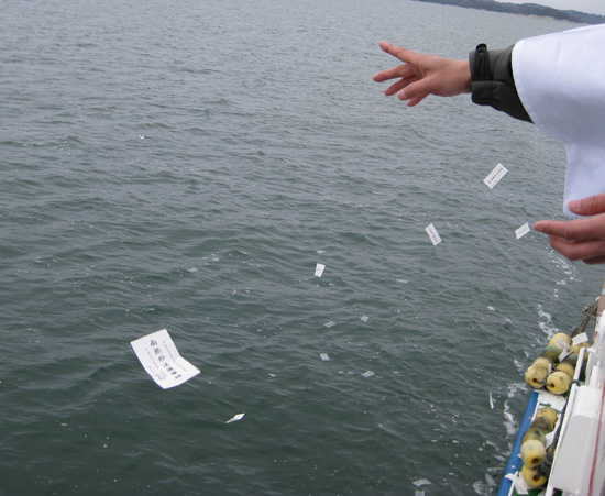 沖合に出た所で停船いただき船上でも合同のお参りがあり読経が響きわたりました。