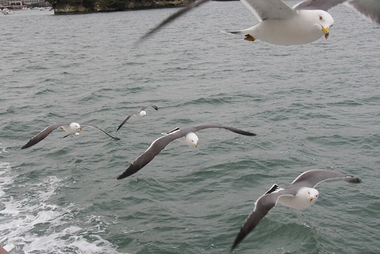何処の遊覧船も同じで餌を求めてカモメが付いてきます。