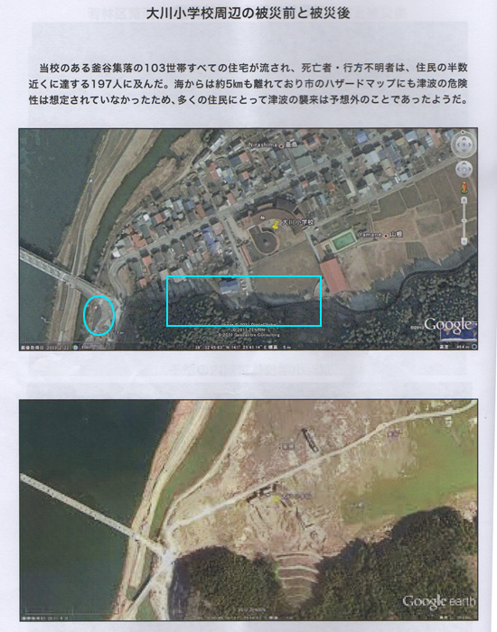 そして写真の左端(橋の袂の丸)ここに全児童が逃げて津波に飲まれ