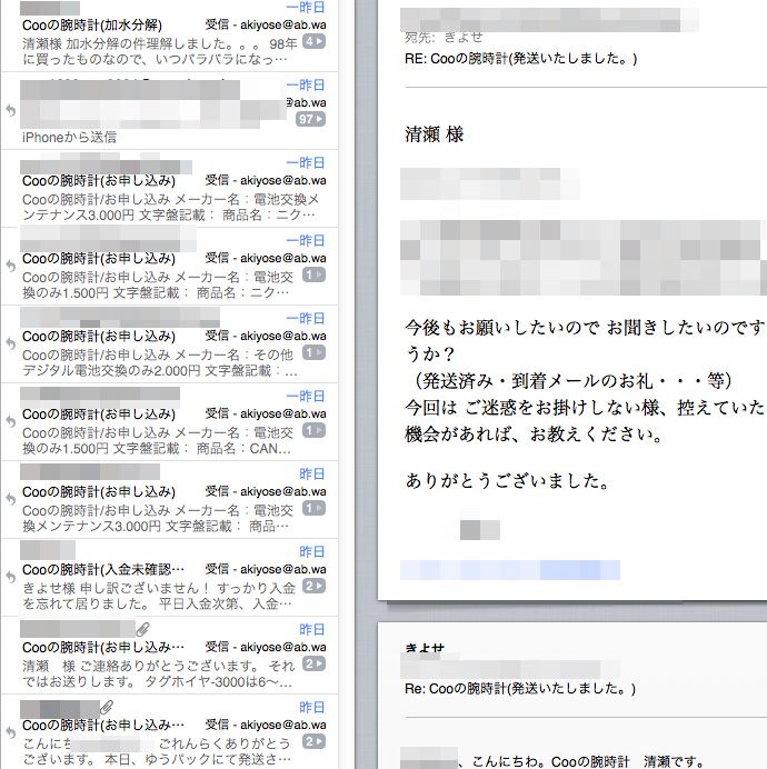 「電池交換の受付に関するメールのみが並ぶ様に心がけております」