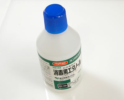 ある程度乾燥してきたら、薬局で買った「消毒用エタノール」を綿棒に付けて拭きます。
