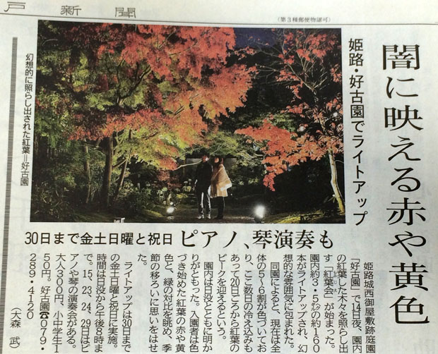 そして今朝、なにげに神戸新聞を見ていたら好古園の記事が。