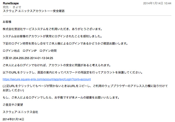 こいうメールも形は変われど多いです。兎に角「クリックさせる」なら手段は選ばずですか。