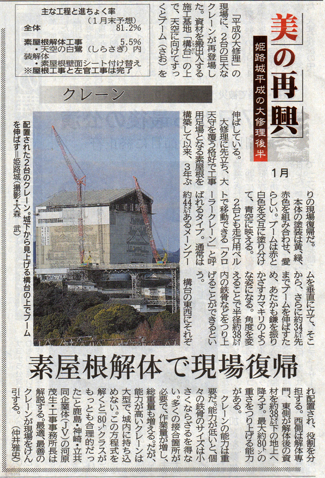 本日2014.1.28 神戸新聞の記事ですが「素屋根の解体が始まった」と。