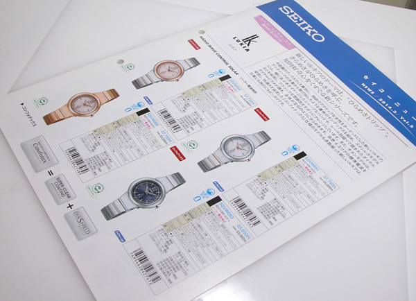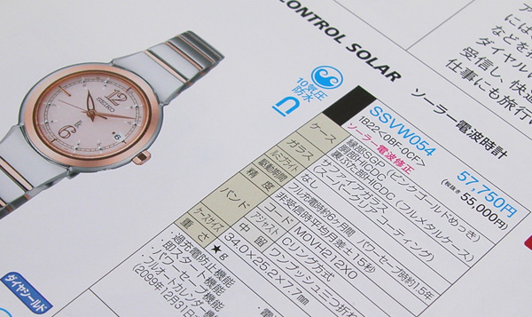 パンフ掲載の一つ「ルキア」ですが55.000円です。何故高いかというと「ソーラー」で「電波」だからですが、これ私が仕入れると「35.750円+税」ですから「37.537円」です。