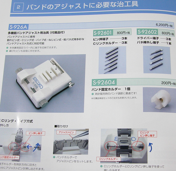 そして驚いたのは「ベルト調整の本格的な工具」。SEIKOさんが作るとこうなるんだという印象ですが。上の「裏蓋開け工具」共に、こういう工具は新品に近いものだけに有効です。