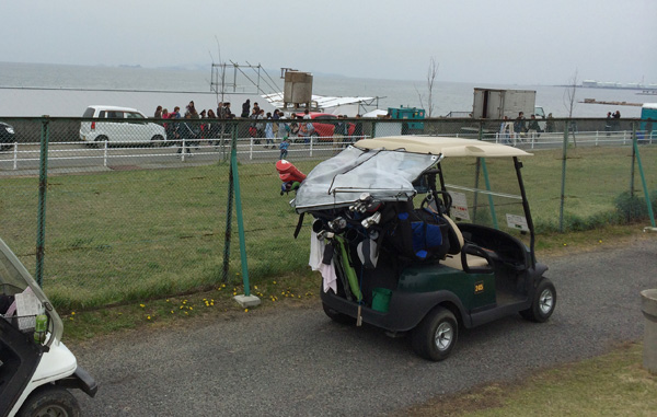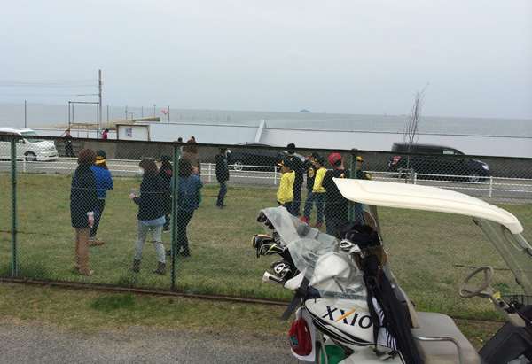 ティーグランドの横。フェンスを挟んで向こうは娑婆ですから若者で賑やか。