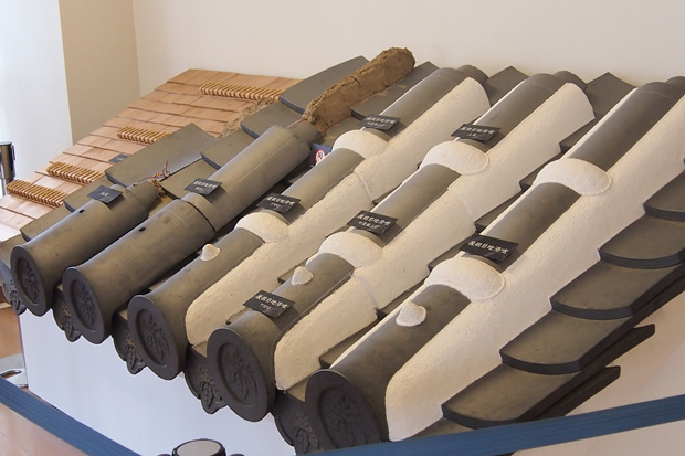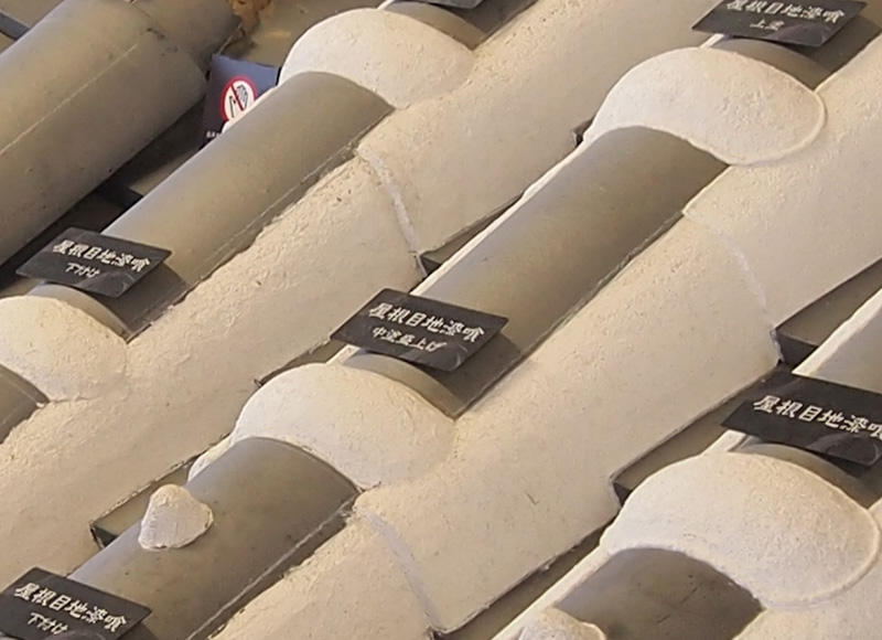 アップにするとこうなります。漆喰でコーキングのように塗ってあるので屋根が白くなりました。