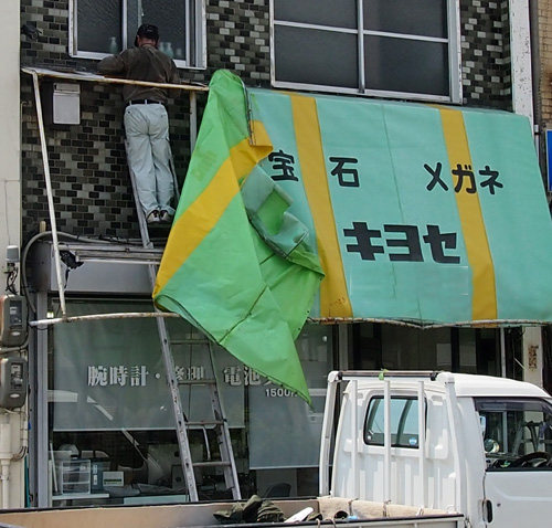 父がこの店を建てたのは40数年前で、一度貼り替えておりますから。