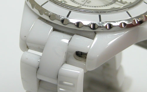 写真はCHANEL J12の弓環ですがセラミックで出来ております。