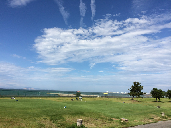 でもフェアウェーの横は海。台風の風が吹き付けており熱波は吹っ飛び汗をかかないので暑く感じないラウンドでした。穏やかな瀬戸内の海ですから、さざ波が立っているのが珍しいくらい。11時には店に戻りますから仕事も出来きるし今後、ハマりそうですか。