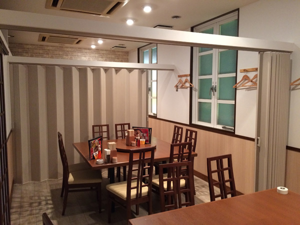 このアコーデオン・カーテンを閉めると、8人で人目を気にせず宴会が可能です。