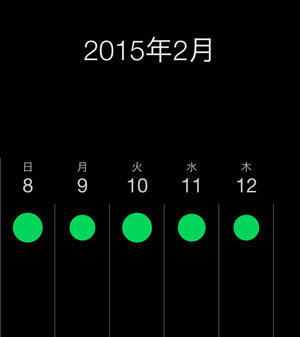 これは週間の表示ですが、両サイドの大きい○で12.000歩くらいです。