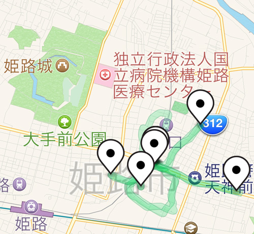 青い○をタップすれば自転車での「移動距離・時間・距離」が表示されます。
