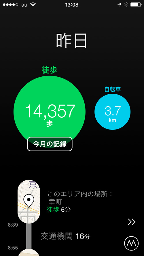 また例の「Moves」の画面ですが。14.000歩は「今月の記録」ですが伝えたいのは