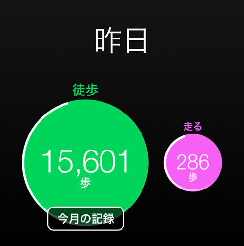 昨日は「15.601歩」(今月の記録)ですが問題は「走る:286歩」