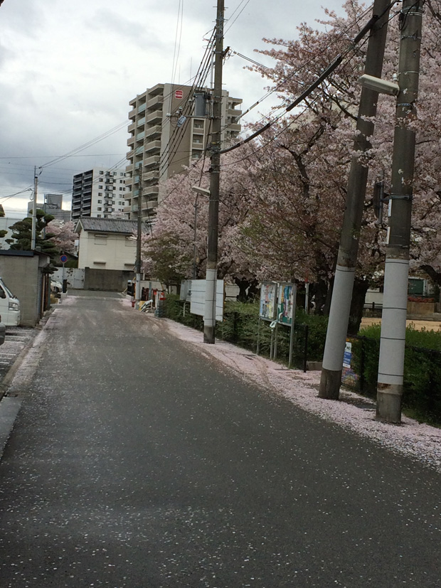 「散りゆくサクラ」今朝は姫路も冷え込みが強く、風が強い。