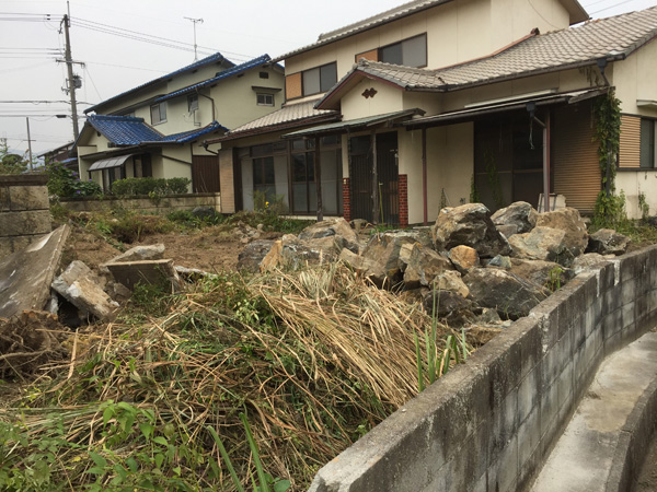 家屋の解体の前ですが、庭の池を撤去して大きな石が出ました。池用の石だけではなく