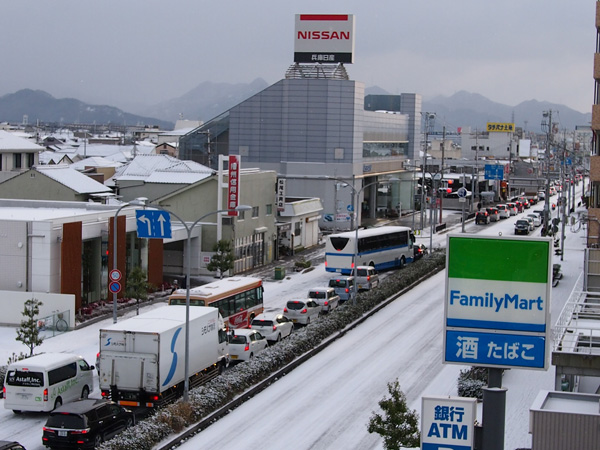 昨日、起きたら一面の雪景色で店の前では朝から渋滞が起きておりました。