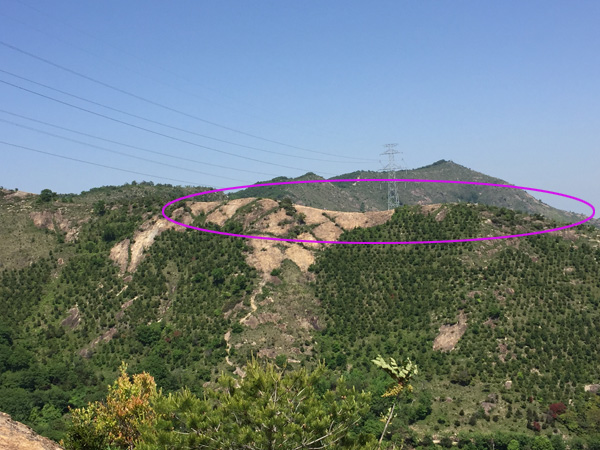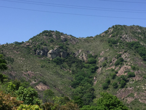 帰りがけに駐車場から振り返ると、いま登ってきた岩肌が。