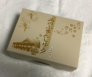 そして「みのぶまんじゅう」、これも甘さ控えめの”こしあん”ですが。