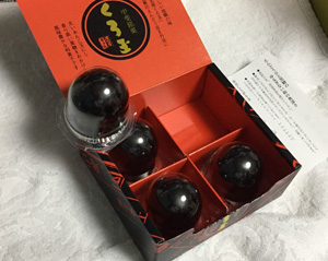 お土産は身延山の「くろ玉」まんじゅう。えんどうの杏に黒蜜の衣。