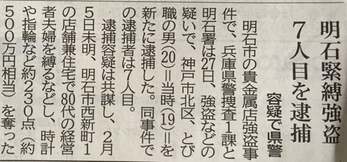 2017年に2月に明石の「時計貴金属店に強盗が入ったという事件」があり