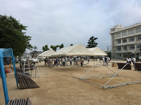 城東地区の役員さんが集まっての準備作業。城東小学校へ朝7時集合です。