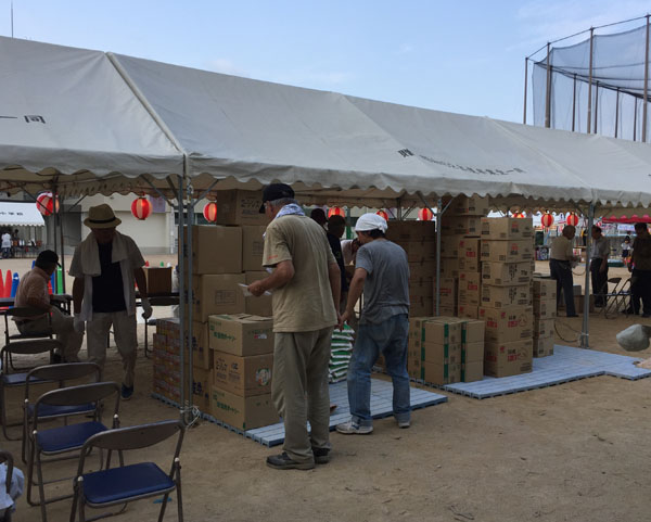 私らの仕事は、まつりの準備・後片付け・福引きの景品交換です。