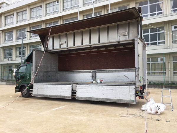 それでも暑い。これだけ広い空間を、6時間で作り上げる訳で人の力だけが頼り。