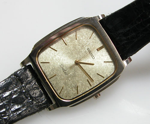 先日、電池交換でお預かりの腕時計。SEIKOのDolceで超硬質ケースに