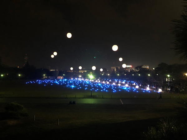 三の丸広場に到着すると大きなバルーンが浮いており、音楽と共に幻想的な世界がそこに。