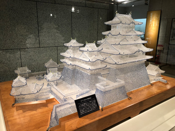 受付の横にあったガラス細工の姫路城。閉館時間が近づき外へ出ると