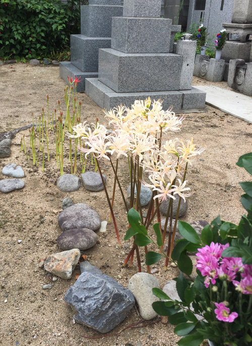 お寺の墓地の片隅でふと見かけた「白い彼岸花」。