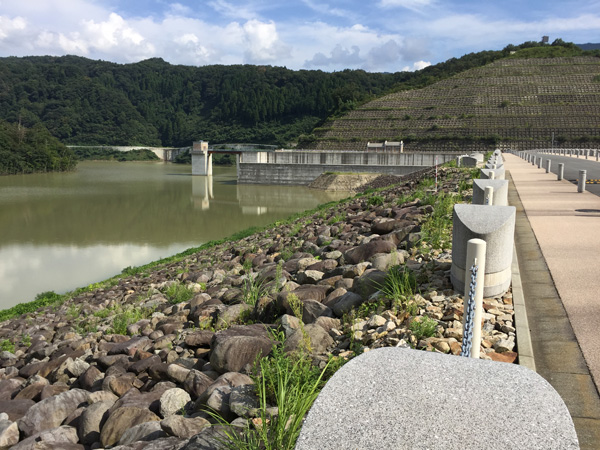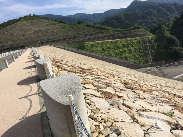 ダム湖側も緩やかな傾斜で、これは丈夫で事故も少なく良い。