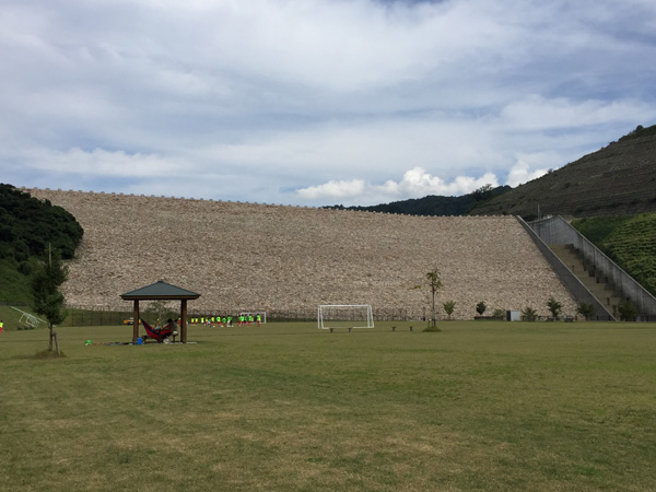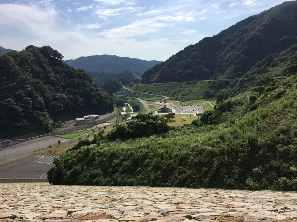 このダムで驚いたのは写真の様に緩やかな傾斜。まさに歩いて降りていけるくらいです。(侵入禁止ですが)。