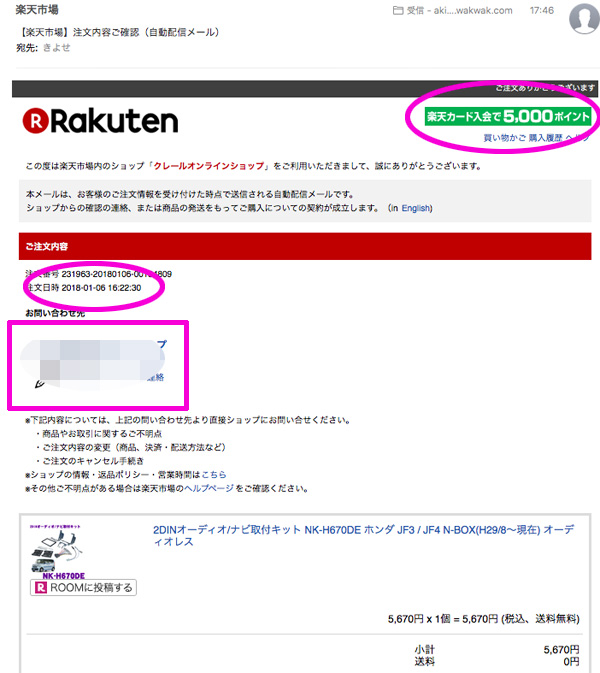 不審な 楽天・注文確認メール