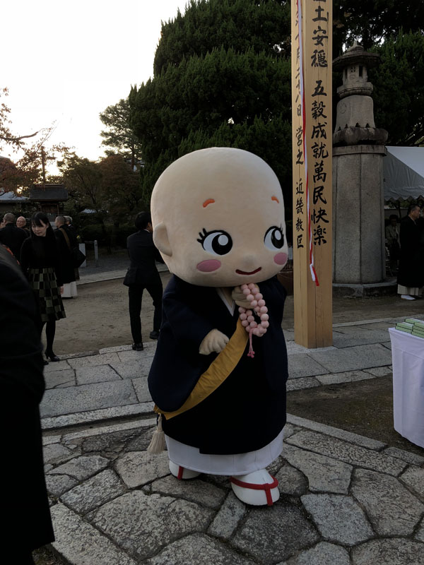 開始のセレモニーでは、この参道を近くの檀家さん達による笛や太鼓に、まといが振られ盛大に賑やかに始まりました。写真の左に写っている頭の大きなお坊様。