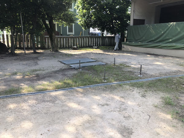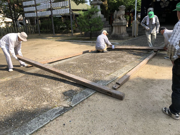 ついでに夏祭りも15日に行われますから櫓の組み立ても。