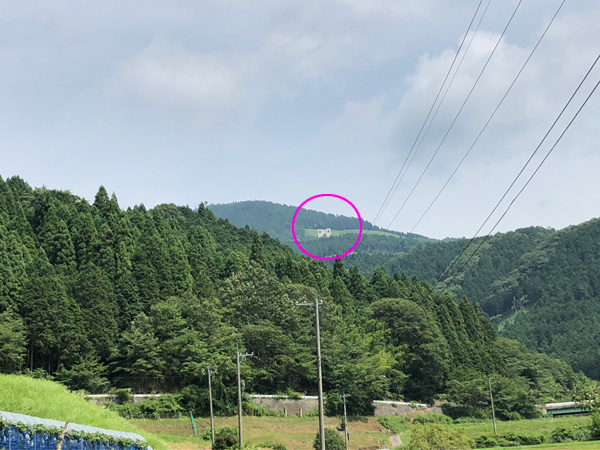 山の上に白い大きな建物が見えてきました。