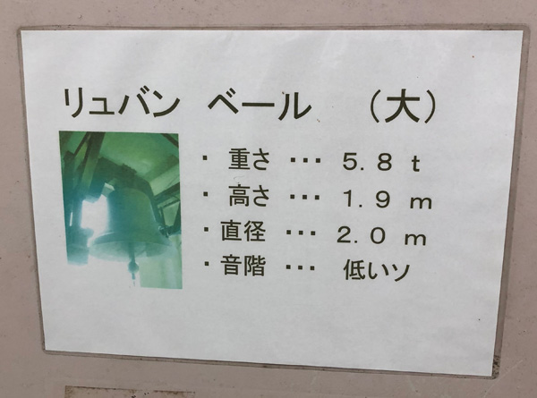 (大)と書いてありますから塔の左右には「大」と「小」のベルが吊り下げられておりどちらも鳴らせる事が出来ます。