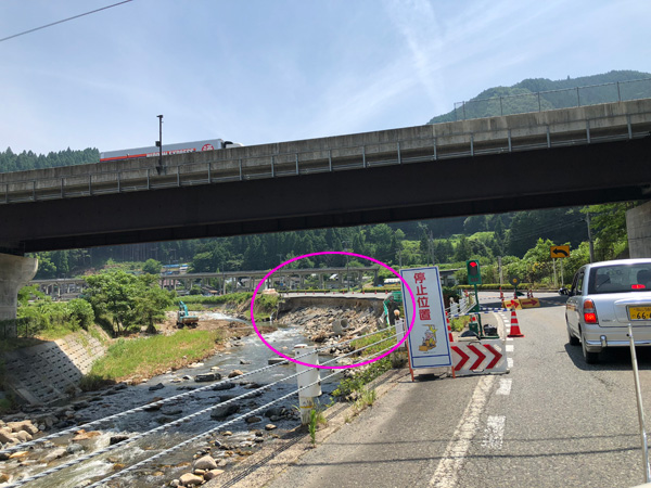 路肩崩れていたり、まだ豪雨の被害が多く残るのが確認されます。