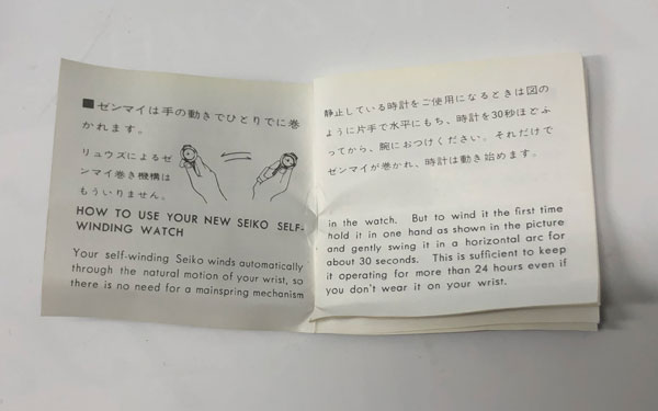 当時の説明ですから精度などの仕様もなく、驚くのは「30m防水です」と記載されております。当時のファジーな雰囲気が感じられホッとする感じですね。