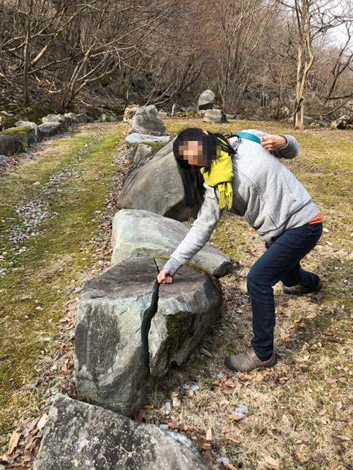 写真の左は数十メートルの崖。落ちたら大変ですが結構な登山道です。