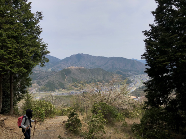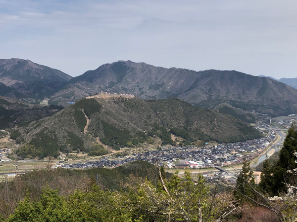 山の中腹から望む「天空の城:竹田城」。(跡)。朝来の街も望めます。